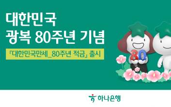 하나은행은 대한민국 광복 80주년을 기념해 '대한민국만세 80주년 적금'을 출시했다고 11일 밝혔다.‘대한민국만세 80주년 적금’은 6월 호국보훈의 달을 맞아 하나은행과 대전지방보훈청이 협력해 새롭게 출시한 금융상품으로, 우대금리를 포함해 최고 연 8.15%의 금리가 적용되며, 가입 금액은 매월 1만원 이상 20만원 이하, 계약 기간은 1년이다.먼저, 하나은행은 국가유공자, 군인, 경찰, 소방공무원 등 대한민국을 위해 헌신한 손님에게 연 2.0%의 우대금리 혜택을 제공하며, 이외에도 2025년(광복 80주년) 출생 신생아 또는 부모 연 2.0%, 하나은행 첫 거래 손님 연 1.15%, 태극기 게양하기 등 나라사랑 실천 서약 완료 손님 연 1.0% 등 다양한 금리 혜택을 마련했다.또 이번 상품은 손님 만기이자 금액 중 815원과 하나은행의 추가 지원금 815원을 합해 계좌당 총 1630원이 독립유공자 지원을 위해 기부되며, 상품 가입 손님들에게는 추첨을 통해 ‘광복 80주년 기념주화’, ‘현충시설 무료 탐방’, ‘프로축구 관람권’ 등 다양한 혜택이 제공된다.하나은행 관계자는 “국가유공자, 독립유공자 등 대한민국을 위해 희생한 분들을 기억하고, 보훈 문화 확산에 앞장서기 위해 이번 상품을 출시했다”며 “하나은행은 앞으로도 다양한 사회구성원과 함께 성장할 수 있는 상생금융 상품을 선보일 계획이다“고 밝혔다.‘대한민국만세 80주년’ 적금은 오는 12월 말까지 81500좌 한도로 판매되며, 이번 상품에 대한 자세한 내용은 하나은행 모바일 앱 ‘하나원큐’ 또는 하나은행 영업점에서 확인 가능하다.권지예 기자 kwonjiye@edaily.co.kr 2025.06.11 15:35