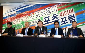 스포츠계에 뿌리 깊게 자리 잡은 잘못된 용어들을 바로 잡자는 의미있는 목소리가 힘차게 울려퍼졌다. 한국체육기자연맹은 26일 오후 2시30분 서울 중구 프레스센터 18층 외신기자클럽에서 '바람직한 스포츠 용어 정착을 위한 스포츠미디어 포럼'을 개최했다.이날 행사는 체육계에 만연한 왜색 표현, 잘못된 용어사용 등으로 오염된 우리말의 정체성을 회복하고 바람직한 스포츠 용어를 정착시키기 위한 스포츠 미디어의 임무를 모색하기 위해 마련됐다.문화체육관광부, 한국언론진흥재단(KPF), 국민체육진흥공단(KSPO), 대한체육회가 후원하고 2019 광주세계수영선수권대회 조직위원회, 케이토토, 위피크, 국기원이 이날 행사를 협찬했다. 스포츠 기사에 녹아든 일본식 표현을 주제로 발표에 나선 OSEN 홍윤표 선임기자는 현장에서 당장 실천해야 할 대표적인 용어로 '파이팅'을 꼽았다. 그는 "일본에서도 '파이팅' 구호를 쓰지 않는다. 대신 '간바레'라는 단어를 쓴다. 우리도 '으랏차차', '아자아자' 등으로 바꿔야 한다"고 말했다.실제로 파이팅은 영미권에서는 통용되지 않는 용어다. 자칫 상대를 윽박지르는 호전적인 표현으로 오해받기 십상이다. 그밖에 '전지훈련'은 '현지훈련', '계주'는 '이어달리기', '기라성'은 '쟁쟁한', '고참'은 '선임', '입장'은 '처지' 등으로 바꿔야 한다고 주장했다.한겨레 김동훈 체육부장은 이질적인 남북의 스포츠용어를 통일하기 위한 노력이 필요하다고 힘주어 말했고 성균관대 정희창 교수는 무분별한 외래어 표현이나 성차별적인 스포츠용어의 사용을 자제해야 한다고 목소리를 높였다. 주제발표에 이어 한국체육대학 김학수 스포츠언론정보연구소장의 주재 하에 바람직한 스포츠용어를 정착시키기 위한 방안을 두고 자유토론도 진행됐다. 포럼을 주최한 한국체육기자연맹 정희돈 회장은 "이 자리가 향후 한국 스포츠에 긍정적인 영향을 미치는 의미있는 자리가 됐으면 좋겠다”며 "스포츠미디어 종사자들이 아름다운 우리말 생태계를 오염시키고 있는 잘못된 표현들을 없애고 바른 방향으로 이끌어갈 수 있는 길잡이로 나서자"고 제안했다.국민체육진흥공단 조재기 이사장도 "언어는 사회를 비추는 거울"이라고 말문을 연 뒤 "흔히 사용하는 '파이팅'이라는 구호는 무서운 말이다. 일제시대 가미카제가 전투에 나가기 전에 외쳤던 말에서 유래된 것이 어느덧 우리가 스포츠를 대하는 태도에까지 영향을 미치고 있다. 정신문화에 부정적 영향을 미치는 단어라면 과감하게 버리고 가야 한다"고 화답했다.대한체육회 김보영 홍보실장은 "이번 포럼을 계기로 대한체육회의 각종 행사에 '파이팅' 구호부터 바꾸는 것을 시작으로 잘못된 용어를 바로잡기 위해 고민하고 논의하겠다"고 밝혔다. 한국체육기자연맹은 이후 자료집 제작 배포 등을 통해 올바른 스포츠 용어를 사용하고 전파하는데 힘을 기울일 예정이다.최용재 기자
