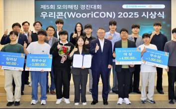 우리은행이 모의 해킹 경진대회를 열었다. 우리은행은 24일 자사 인터넷뱅킹과 모바일뱅킹의 취약점을 찾아내는 모의 해킹 경진대회를 금융보안원과 함께 열었다고 밝혔다.이번 대회는 지난달 18∼29일 총 24팀, 80여명의 학생이 우리은행 인터넷뱅킹과 우리WON뱅킹에서 해킹 위험 요소와 보안 취약점을 발굴하는 방식으로 진행됐다.우리은행은 이렇게 찾은 취약점을 위험도, 영향도, 창의성 등을 기준으로 평가해 4개 팀에 총 850만원의 상금을 수여했다.정진완 우리은행장은 "최근 금융권 해킹 사고로 금융 보안 중요성이 더욱 커지고 있다"며 "고객이 안심하고 금융 서비스를 이용할 수 있도록 선제 보안 활동과 전문 인재 양성에 최선을 다하겠다"고 말했다.김두용 기자 2025.09.24 13:55