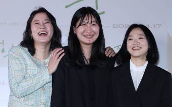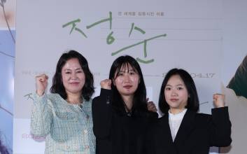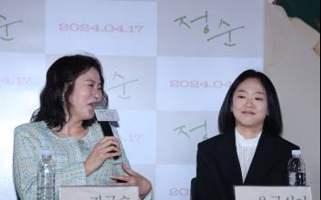 배우 김금순, 윤금선아가 4일 오후 서울 용산구 CGV용산아이파크몰에서 열린 영화 '정순' 언론배급시사회 및 기자간담회에 참석해 취재진의 질문에 답하고 있다.