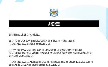 ‘음주 운전’ 대구 코치, 계약 해지→연맹 징계 확정…400만원 제재금+14G 출장정지