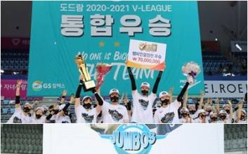 [포토]컵대회 정상 현대건설, 힘찬 모자 세레머니
