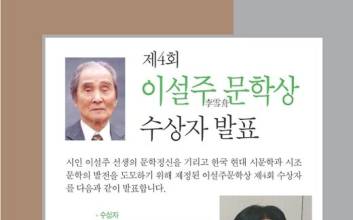 제4회 이설주 문학상 수상자는 이근배 시조 시인
