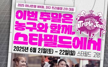 한국여자농구연맹(WKBL)이 ‘2025 하나은행 WKBL 3x3 트리플잼’ 2차 대회를 맞아 다양한 이벤트와 경품을 예고했다.2025 하나은행 WKBL 3x3 트리플잼 2차 대회는 오는 21일부터 22일까지 경기도 고양시 스타필드 고양에서 열린다. 국제 대회로 진행되는 이 무대는 지난달 1차 대회 1,2위 팀을 포함해 일본·필리핀·싱가포르 등 세계 각국의 3x3 농구 대회 우승 팀이 참가한다. 10개 팀이 이틀간 우승을 다툴 전망이다.WKBL은 주말 스타필드를 찾는 관람객들을 대상으로 다채로운 이벤트와 즐길 거리를 제공한다. 슈팅 챌린지, 사다리 타기, 컵 쌓기 등 다양한 관람객 참여형 이벤트가 펼쳐진다. 포토존도 마련해 농구공, 유니폼, 머리띠 등 농구 아이템을 활용해 특별한 추억도 함께 남길 수 있다. 유소녀 농구 퍼포먼스 걸그룹 W걸스의 특별 공연도 진행된다.푸짐한 경품도 준비됐다. 박향희김 선물세트, 이디야커피 텀블러 및 커피믹스, 보라소년 리커버리 스프레이, 포카리스웨트 선물세트, 몰텐 농구공 등 이벤트를 통해 다양한 상품을 증정한다.대회 현장을 방문하지 못한 팬들을 위한 소셜미디어(SNS) 이벤트도 진행한다. 우승 팀 예측 이벤트, 선수 응원 댓글 남기기, 3x3 농구 퀴즈 등 WKBL 공식 인스타그램 채널을 통해 참여할 수 있다.아시아 최정상 선수들이 출전하는 이번 대회는 유튜브 여농티비 채널과 네이버 스포츠를 통해 전 경기 생중계된다. 3x3 농구는 물론 다양한 현장 이벤트와 푸짐한 경품이 마련돼 더욱 풍성한 농구 축제가 될 전망이다.김우중 기자 2025.06.19 10:11