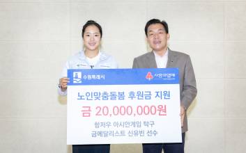 '삐약이' 신유빈(대한항공)이 또 기부 소식을 알렸다. 2022 항저우 아시안게임에서 탁구 여자 복식 금메달을 획득한 신유빈은 수원시에 저소득층 어르신을 위한 후원금 2000만원을 기탁했다. 신유빈 매니지먼트사 GNS에 따르면 수원시는 신유빈의 기부금으로 10만원 상당의 전기장판을 구입해 노인맞춤돌봄 대상 200명에게 전달할 계획이다.신유빈은 전날 팔달노인복지관에서 이재준 수원시장을 만나 기부금을 전달했다.신유빈은 "어릴 적부터 수원시로부터 많은 도움과 지원을 받아 늘 감사한 마음을 가지고 있었다"며 "아시안게임에서 좋은 성적을 내 소속팀인 대한항공으로부터 포상금을 받았는데 그 일부를 좋은 일에 쓰기로 했다"고 말했다.이은경 기자 2023.10.22 09:43