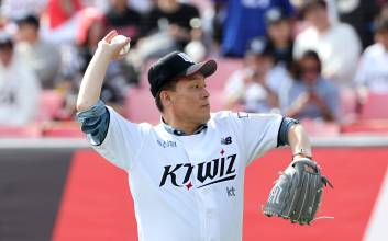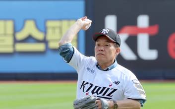 2024 프로야구 KBO 포스트시즌 kt위즈와 LG트윈스의 준플레이오프(준PO) 4차전 경기가 9일 오후 수원kt위즈파크에서 열렸다. 이재준 수원특례시장이 시구자로 나와 공을 던지고 있다. 수원=김민규 기자 mgkim1@edaily.co.kr /2024.10.09/ 2024.10.09 14:01