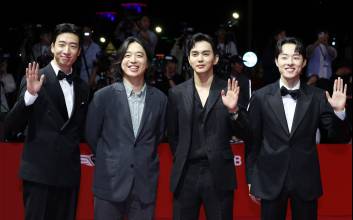 제28회 부산국제영화제(BIFF) 개막식이 4일 오후 부산 해운대구 영화의전당 앞에서 열렸다. 배우 유수빈, 이정곤 감독, 유승호, 김동휘가 레드카펫 행사에 참석해 포즈를 취하고 있다. 올해 제28회 부산국제영화제는 10월 4일부터 13일까지 영화의 전당 일대에서 진행된다. 공식 초청작은 69개국 209편, 4개 극장 25개 스크린에서 상영된다. 부산=서병수 기자 qudtn@edaily.co.kr /2023.10.04/ 2023.10.04 20:23