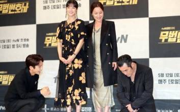 '무법변호사'는 배우들의 처절함으로 채워가고 있다. 배우들 개개인 힘만으로 시청자를 흡수하겠다는 각오다.8일 서울 영등포구 타임스퀘어 아모리스홀에서는 tvN '무법변호사' 제작발표회가 열렸다. 이준기·서예지·이혜영·최민수·김진민 감독이 참석했다.이날 최민수는 현장에서 돌발 행동을 보여 웃음 바다를 만들었다. 최민수는 사진 촬영 때도 무릎을 꿇기도 했으며, 이준기와의 몰래카메라도 펼쳤다. 담배·욕·흉기 등이 나올 수 없는 드라마 제작환경에 대한 개인적인 생각도 밝혔다.다른 배우들은 최민수의 돌발 행동에 낯설지 않아 하는 모습이었다. 오히려 즐기고 있었다. 그 부분에서 배우들이 현장에서 얼마나 즐겁게 촬영 중인지 엿볼 수 있었다.'무법변호사'는 이준기가 11년 만에 '개와 늑대의 시간' 김진민 감독과 재회를 해 눈길을 끈 작품이다. 이와 관련해 김진민 감독은 이준기에 대해 "11년 전 만났을 땐 뭔가를 열정적으로 하는 사람이라는 인상이 남아았다. 여전히 마찬가지다. 달라진 건 유연해졌다는 거다. 다른 사람의 말을 듣고 자기만의 방식으로 소화했다. 그사이에 엄청난 스타가 됐고, 스태프와 다른 배우 챙기는 모습을 보면서 오래 가는데 이유가 있구나 라고 생각했다"며 "같이 연기해볼만한 배우들과 연기할 기회가 생겨서 다행이라고 생각한다. 나를 통해서가 아니라 작가의 글과 배우들의 앙상블 속에서 롱런하는 배우로 가길 바라고 있다"고 밝혔다.이준기도 "오랜만에 찾아줘서 감사했다. 뭔가 있는 작품이라는 기대가 있었다. 기대를 갖고 감독님과 술한잔하면서 이야기를 듣다가 이 캐릭터를 내가 연기하면 재밌겠다는 생각을 했다"며 감독님이 '11년 전 이준기에게 터닝포인트를 만들어줬다면 10년 더 먹게 살 수 있게 하는 감독이 돼야하지 않겠냐'는 말을 했다. 이 점에 가장 끌렸다"고 화답했다.서예지는 OCN '구해줘' 이후 첫 작품으로 '무법변호사'를 선택했다. 이와 관련해 그는 "전작이 다소 우울했다. 아무래도 빨리 벗어날 수 있는 캐릭터가 뭐가 있을까 하다가 김진민 감독님이 제안을 했다. 하재이는 전작이 보여지지 않을까 하는 기대감에 선택했다. 액션 드라마라 겁이 나긴 했다. 여자 배우가 안보일까 걱정을 했는데 여배우들에게도 액션을 할 수 있는 여건이 만들어져서 선택한 것에 대해 기분이 좋다"고 밝혔다.'무법변호사'는 법 대신 주먹을 쓰던 무법(無法) 변호사가 자신의 인생을 걸고 절대 권력에 맞서 싸우며 진정한 무법(武法) 변호사로 성장해가는 거악소탕 법정활극. '라이브' 후속으로 12일 오후 9시 첫 방송.이미현 기자 lee.mihyun@jtbc.co.kr사진=김민규 기자