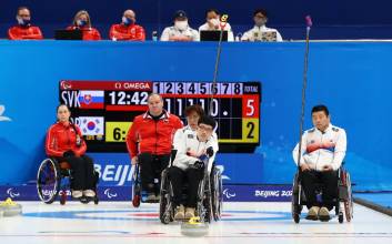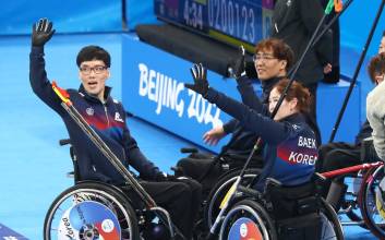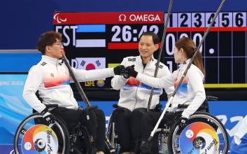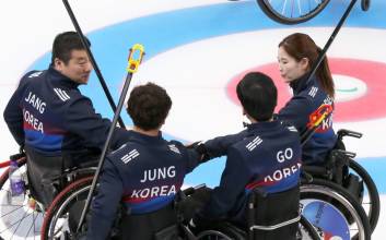 대한민국 휠체어컬링 대표팀이 4강 진출에 실패했다. 한국 휠체어컬링 ‘팀 장윤정고백’이 10일 중국 베이징 국립아쿠아틱센터에서 열린 2022 베이징 동계패럴림픽 예선 9차전에서 미국에 6-7로 패했다. 한국은 총 10경기로 치러지는 예선에서 4승 5패가 됐다. '팀 장윤정고백'은 4강 탈락이 이미 확정된 상황에서 미국전을 치렀다. 당초 12팀이었다가 러시아패럴림픽위원회(RPC)의 퇴출로 11팀이 남은 이번 대회는 예선 성적 상위 4팀이 4강에 진출한다. 한국은 전날 에스토니아(5-2)와 영국(8-6)을 연달아 꺾어 예선 8차전까지 4승 4패로 라트비아와 공동 5위에 자리, 4강 진출 희망을 밝혔다. 한국은 10일 미국, 스웨덴과 경기에서 최대한 많은 승리를 챙기고 다른 경기 결과를 지켜봐야 했다. 대한장애인컬링협회 김정훈 사무국장은 “남은 경기에서 전부 승리하는 게 최선이고, 만약 5승 5패가 돼도 공동 4위가 될 수도 있다”며 “1패를 하더라도 일단 지켜봐야 할 것 같다”고 했다. 그러나 오전 세션 경기에서 4강행 좌절이 확정되고 말았다. 중국, 스웨덴(이상 7승 2패), 캐나다(7승 3패)가 이겨 3개 팀은 4강 진출을 확정했다. 한 자리가 남은 상황에서 슬로바키아가 스위스를 꺾어 6승 3패로 4위 자리를 지키며 4강행에 유리한 고지를 점했다. 한국과 라트비아는 4승 4패로 공동 5위인 상황. 한국은 남은 2경기를 모두 이기고, 슬로바키아가 남은 1경기에서 져 6승 4패로 동률이 돼도 승자승 원칙에 따라 순위가 뒤로 밀린다. 한국은 지난 8일 예선 6차전에서 슬로바키아에 2-7로 졌기 때문이다. 4강 진출에 실패했더라도 한국은 미국과 8엔드까지 접전을 펼치며 최선을 다했다. 장재혁(51), 윤은구(53), 정성훈(44), 고승남(37), 백혜진(39·이상 의정부 롤링스톤)으로 구성된 한국 대표팀은 전날에 이어 이날도 장재혁을 스킵으로 내세웠다. 백혜진이 리드, 고승남이 세컨드, 정성훈이 서드를 맡았다. 윤은구는 벤치에서 경기를 지켜봤다. 한국은 선공으로 시작한 1엔드에 점수를 스틸했다. 하우스 내에 한국 스톤이 1번이 상황에서 미국은 마지막 스톤 딜리버리에서 자신의 스톤을 밖으로 쳐내는 실수를 했다. 한국은 1점을 올리며 출발했다. 2엔드에 2점을 허용해 역전당한 한국은 3엔드 다시 승부를 뒤집었다. 장재혁이 절묘한 테이크 아웃 샷으로 하우스 안에 있던 미국 스톤을 쳐냈다. 반면 미국은 마지막 스톤으로 한국의 스톤을 밖으로 내보내지 못했다. 장재혁은 마지막 스톤을 하우스 내에 던짐으로써 2점을 얻어냈다. 5-3으로 앞선 6엔드에는 2점을 내줘 동점이 됐다. 7엔드에서는 경기 도중 교체로 들어온 윤은구가 버튼 근처에 스톤을 놓는 드로우 샷에 성공해, 한국이 다시 1점 차로 앞섰다. 그러나 한국은 8엔드 2점을 허용하며 역전패했다. 미국 서드 스티브 엠트가 더블 테이크 아웃 샷에 성공하며 기세를 올렸다. 이후 미국은 하우스 내에 안정적으로 스톤을 위치시켰다. 한국은 미국의 마지막 스톤 투구를 앞두고 사실상 승부가 결정되자 기권을 선언했다. 경기를 마치고 믹스트존(공동취재구역)에서 만난 백혜진은 “(4강 진출에 실패했다는 소식을 접하고) 아쉬움이 좀 컸다. 우리가 잡을 수 있었던 팀들을 놓치는 바람에 이렇게 된 것 같다” 며 “유종의 미를 거두자라는 생각으로 경기에 나섰다. 하지만 미국팀이 잘 했다. 마지막 엔드가 아쉬웠다”고 했다. 백혜진은 지난 예선전들을 떠올리며 “라트비아, 스위스전이 아쉬웠다. 선수들이 패럴림픽이라는 큰 무대가 처음이다 보니, 긴장을 많이 했었던 것 같다”며 “중국전에서도 미스 샷들이 많아지면서 안 좋은 결과가 나오지 않았나 생각한다”고 했다. 한국은 오후 8시 35분(한국시간) 스웨덴과 예선 최종전을 치른다. 백혜진은 “유종의 미를 거두겠다. 파이팅”이라며 주먹을 쥐었다. 베이징=김영서 기자·패럴림픽공동취재단