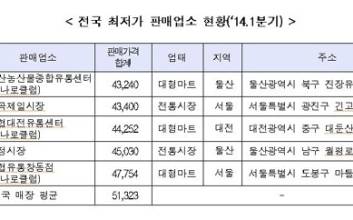 주요 생필품 가격, 전통시장이 가장 저렴, 백화점 가장 비싸