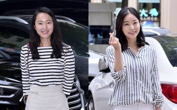 [ST포토] 윤진서-김가은, 스트라이프로 멋낸 데일리 패션