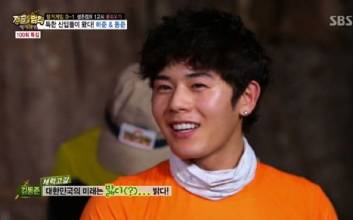 제국의 아이들 김동준이 차기 족장 자리를 예약했다.김동준은 28일 방송된 SBS '정글의 법칙'에 출연해 남다른 승부욕과 빠른 적응력으로 시청자들의 눈길을 끌었다. 배우 서하준과의 자존심 대결 또한 시청 포인트. 보르네오 섬에서 첫 날을 보낸 병만족은 마리마리 부족에게 정글 생존법을 배웠다. 첫 번째 관문인 불피우기 미션에서부터 김동준의 승부욕이 불타올랐다. 같은 신입부족인 서하준이 먼저 성공하자, 박수를 보내면서도 아쉬움이 남는 듯한 모습. 결국은 "나도 한 번 더하겠다"며 재도전해 불피우는데 성공했다.2교시인 천연나무 텀블린 란사란 수업에서도 김동준은 앞서나갔다. 모든 부족원들이 점프를 뛰는데 실패한 가운데, 홀로 2미터 가까이 뛰어오르며 빠르게 성공했다. 샤이니 온윤는 "리틀 김병만이다"라고 소감을 전했고, 김병만도 "리틀 김병만, 충분할 거 같다. 몇 번만 정글을 하면 나 없어도 생존을 잘 할거 같은 친구다"라고 치켜세웠다.'정글의 법칙'은 100회를 맞아, 병만족 대 정글의 법칙 레전드 팀의 '헝거 게임'으로 펼쳐진다. 레전드팀에는 전혜빈·추성훈·오종혁·광희 등이 포함됐다. 엄동진 기자 2014.03.01 10:31