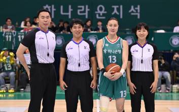 여자 농구 ‘리빙 레전드’ 김정은(37·부천 하나은행)이 여자프로농구(WKBL) 새 역사를 썼다.김정은은 2일 오후 7시 부천체육관에서 열린 용인 삼성생명과 하나은행 2024~25 WKBL 정규리그 홈 경기에서 경기 시작 25초 만에 림을 갈라 WKBL 통산 8141점을 달성했다.이 경기 전 통산 8139점을 기록했던 김정은은 삼성생명전에서 2점을 추가하면서 이 부문 1위(8140점) 정선민 전 국가대표팀 감독의 기록을 넘어섰다.김정은이 단독 1위에 등극하는 순간, 게임은 멈췄다. 장내 아나운서가 김정은의 대기록을 조명했다. 김정은은 심판진과 기념사진을 찍었다. 이후 경기가 재개됐다.지난 2006 WKBL 신인선수 드래프트 전체 1순위로 신세계에 지명된 김정은은 2005년 12월 21일 첫 득점을 올렸다. 이후 2000~8000점 구간 최연소 기록을 그가 싹쓸이했다.김정은은 2010~11, 2011~12, 2013~14, 2014~15시즌 4차례 득점왕에 오른 바 있다. 단일리그 기준 최다 득점상(4회) 역시 김정은이 보유 중이다.부천=김희웅 기자