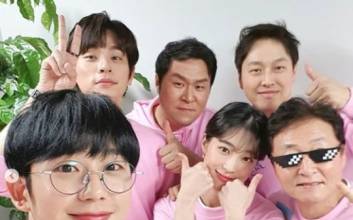 정해인, '시동' 배우들과 핑크빛 단체컷 "유쾌한 마무리, 힘찬 출발"