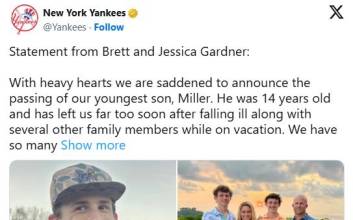 전 뉴욕 양키스 외야수 브렛 가드너(42)의 아들이 사망한 것으로 알려져 안타까움을 자아내고 있다. 가드너는 24일(한국시간) 양키스 구단 소셜미디어(SNS)를 통해 '무거운 마음으로 막내 아들 밀러의 사망 소식을 전하게 돼 슬프다. 그는 14살이었고 휴가 중 다른 가족들과 함께 병에 걸려 너무 빨리 우리 곁을 떠났다'라고 밝혔다.가드너에 따르면 아들의 사망은 '원인불명'이다. 가드너는 '현재로서는 의문이 많고 해답은 거의 없지만 3월 21일 오전, 평화롭게 잠든 채 세상을 떠났다는 걸 알고 있다'며 '어려운 시기에 지원과 격려를 보내주신 모든 분께 진심으로 감사드린다. 우리의 믿음과 가족, 친구들이 상상할 수 없는 상실을 극복하는 데 도움이 될 거라고 확신한다. 밀러의 팀 동료와 친구들 그리고 너무 일찍 자녀를 잃은 다른 모두 가족들과 슬픔을 함께 나누며 기도드린다'라고 전했다. 스포츠 전문매체 디애슬레틱에 따르면 밀러 가드너는 사우스캐롤라이나주 서머빌에 있는 한 학교에서 와이드 리시버이자 수비수로 활약했다. 또한 야구에도 소질이 있어 외야수이자 투수로도 뛰었다. 가드너는 아내 제시카와 2007년 결혼한 뒤 슬하에 헌터와 밀러, 두 아들을 두고 있었다. 2008년 메이저리그(MLB)에 데뷔한 가드너는 선수 생활을 양키스에서만 보낸 '원클럽맨'이다. 그의 통산 성적은 1688경기 타율 0.256(1470안타) 139홈런 578타점. 2009년 월드시리즈(WS) 우승 멤버이자 2016년에는 아메리칸리그 외야수 부문 골드글러브를 수상한 팀의 핵심이었다. 2021년을 끝으로 선수 생활을 정리했는데 갑작스러운 아들 관련 ‘비보’에 추모의 목소리가 이어지고 있다.배중현 기자 bjh1025@edaily.co.kr 2025.03.24 15:07