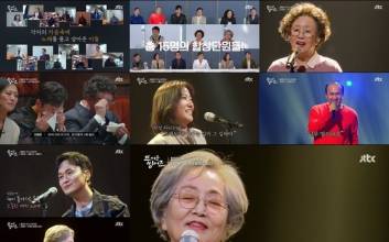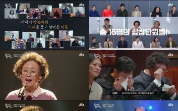 '뜨거운 씽어즈'가 유쾌 발랄한 힐링 음악 예능으로 성공적인 첫 음표를 찍었다. 지난 14일 첫 방송된 JTBC 예능프로그램 '뜨거운 씽어즈'는 탈락도 경쟁도 없는 힐링 음악 예능의 강력한 마법을 발휘했다. 진심을 담아 부른 노래, 이야기가 가득한 무대는 지금 이 순간 힘이 들고 고민에 빠진 이들에게 위로와 웃음을 선물했다. 반응은 뜨거웠다. 1회 시청률은 전국 4.8%, 수도권 4.6%(닐슨코리아, 유료가구 기준)를 기록, 쾌조의 출발을 했다. 김영옥과 나문희를 비롯해 김광규, 장현성, 이종혁, 최대철, 이병준, 우현, 이서환, 윤유선, 우미화, 권인하, 서이숙, 박준면, 전현무까지 사랑스러운 단원들이 뭉쳤다. 나이 총합 990살, 평균 나이 57살의 시니어들은 노래에 대한 열정을 가득 품고 합창단 도전에 나섰다. 노래를 좋아해서, 행복해지고 싶어서 용기를 낸 '아들딸이 500명' 김영옥과 '여우주연상만 7번' 나문희. '음악예능 최고의 서당개' 전현무는 '내일은 고막 남친'을 꿈꿨다. 합창에 대한 애정을 드러낸 '데뷔 50년차' 윤유선, 노래를 사랑하는 '2집 가수' 김광규, 뮤지컬로 다져진 '비주얼 센터' 이종혁, 다재다능 '명문대 엄친아' 우현이 등판했다. 시청률 보증수표 '어머님들의 박보검' 최대철, '센언니들의 센언니' 서이숙, 막강한 동굴 보이스 '예고 교장 선생님' 이병준, 천의 얼굴 이서환이 가세했다. 여기에 무대를 휘어잡는 가창력의 소유자 '나문희 음악 선생님' 박준면, 베테랑 배우이자 '신구 술친구' 우미화, '가수 최초 미니시리즈 남자 주인공' 권인하, 음악을 사랑하는 '쎄시봉 이장희' 장현성까지 어디에서도 본 적 없는 흥미로운 라인업이 시작부터 시청자들의 눈과 귀를 사로잡았다. 이날 음악감독 김문정과 최정훈은 빌리 조엘의 '피아노맨(Piano Man)' 고품격 공연으로 포문을 열었다. 쉽게 볼 수 없는 고막 힐링 무대에 이어 단원들의 자기소개 무대가 공개됐다. 음역대와 화음을 확인하기 위한 무대였다. 달력에 가사를 써서 연습을 한 열정의 나문희. 그는 조덕배의 '나의 옛날 이야기'를 진심을 담아 열창, 눈물샘을 자극했다. 김문정은 "선생님의 노래가 선생님의 이야기처럼 들렸고 어느 순간 나의 이야기처럼 들려서 눈물을 참았다"라고 공감했다. 또 장현성은 "선생님의 스토리가 영화의 한 장면처럼 스쳐지나가면서 집중하게 만들었다. 노래는 이렇게 해야하는 것 같다"라고 감명 깊은 소감을 남겼다. 시간의 공력을 믿는다는 서이숙은 '나를 외치다'를 열창, 빛나는 표현력으로 무대를 휘어잡았다. 노래를 사랑하는 김광규는 평소의 장난기를 쏙 빼고 '사랑했지만'을 담백하게 표현했다. 음악은 평생의 짝사랑이라는 장현성은 찬란했던 20대를 떠올리며, '스물다섯, 스물하나'를 불렀다. 김영옥의 '천개의 바람이 되어'는 또 한 번 깊은 울림을 선사했다. 진심을 꾹꾹 눌러 담아 부른 노랫말은 눈물샘을 자극했다. 김문정은 "음악성과 이야기가 공존할 때 어떤 감동을 주는지 다시 한 번 느끼는 시간"이라면서 먹먹한 감정을 표현했다. 김영옥은 "내세에서도 바람이 되어 열심히 사는 건 부산하고 힘들겠다는 생각을 했지만, 그래도 바람이 되면 좋겠다"라고 이 곡을 선곡한 배경을 전했다. 그는 먼저 세상을 떠난 이들을 떠올리며 "사람이 다 그렇다. 우여곡절이 있고 별의별 일이 많으니깐"이라고 덧붙여 모두를 울컥하게 했다. 긴장해서 연습할 때보다 못한 것 같다고 아쉬워한 김영옥. 그는 오히려 좋았다고 응원한 나문희에게 "우리끼리 좋은 추억하자"라고 미소를 지었다. 뜨거운 열정으로 합창단에 용기를 낸 두 사람의 진심이 안방극장을 파고든 순간이었다. 인생을 노래하는 '뜨거운 씽어즈'는 21일 오후 9시 2회가 방송된다. 황소영 기자 hwang.soyoung@joongang.co.kr 2022.03.15 10:08