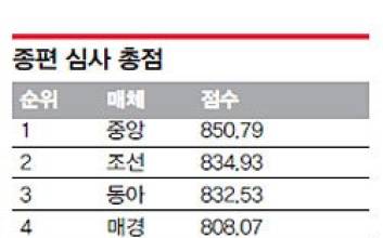 JTBC가 종합편성채널 출범 이후 처음 실시된 방송통신위원회의 방송평가에서 1등을 차지했다.방송통신위원회(이하 방통위) 방송평가위원회는 지난달 30일 회의를 열고, ‘2013년도 종편4사 방송평가’ 결과를 확정했다. JTBC는 이번 평가에서 총점 559.6점을 획득하며 1위에 올랐다. 2~4등은 A사(554.2점), B사(546.7점), C사(542.6점)순이었다. 점수 차이로 보면 각각 5.4점, 12.9점, 17점을 앞섰다. 앞서 JTBC는 지난 2010년 종합편성채널 선정 심사에서도 850.79점으로 1등을 차지한 바 있다. 이번 정부 평가를 통해 다시 한 번 JTBC가 ‘1등 종합편성채널’임을 확인한 셈이다.▶총 24개 항목 중 16개 항목 1위방통위는 지상파·종합편성채널·보도전문채널 등을 대상으로 매년 방송평가를 실시한다. 평가 대상은 직전 연도의 방송프로그램과 경영 실적이다. 평가의 목적은 방송사로서의 공적 책임을 다하고 있는지 면밀히 체크하기 위함이다. 방송평가는 총점 700점으로 운영(275점), 내용(210점), 편성(215점), 3개 부문 24개 항목으로 구성된다. 각 심사항목은 상대평가로 이뤄지며, 채점자의 주관이 개입하지 못하도록 세세히 계량화 돼 있다. 특히 이번 방송평가 점수는 내년 3월 종편 재승인 심사 시, 총점 1000점 중 350점의 비중(35%)으로 반영된다. 재승인 심사 9개 항목 중에서도 비중이 가장 높다. 이번 첫 평가에서 JTBC는 총 24개 항목 중 16개 항목에서 1순위를 기록했다. 운영 부문에서는 ‘재무건전성’ ‘내부감사’ ‘기술투자’ ‘공정거래법 준수’ 등 9개 항목에서 1위였다. 내용 부문에서는 ‘자체평가’ ‘심의규정 준수’ '시청자 의견반영‘ 등에서, 편성 부문에서는 ’편성규정 준수‘ ’시청자위원회‘ 등에서 압도적 우위를 보였다.▶종합편성채널인데 보도 프로그램만 많으면 고득점?이번 평가에 참여한 관계자들은 “종편을 지상파식으로 채점하면서 당초 종편 도입 취지는 평가되지 못했다”고 지적했다. 지상파방송 평가의 경우 오락프로그램이 넘쳐날 것을 우려해, ‘보도·교양 프로그램’ 편성을 많이 할수록 점수를 많이 얻는 구조다. 그래서 EBS가 매년 부동의 1위를 차지한다. 이런 까닭에 일부 종편은 지난해 전체 방송시간의 40~50%를 뉴스나 토론프로그램으로 채우고도, ‘편성부문’에서 고득점을 한 것으로 분석됐다. 이는 다양한 장르의 콘텐트를 공급해 새로운 콘텐트 생태계를 조성한다는 종편 도입의 명분을 흐리게 했다는 중론이다. 특히 ‘재난방송’ 심사항목이 큰 문제로 떠올랐다. 두 번째로 배점이 높은 재난방송(65점)은 태풍, 지진 등을 다루는 뉴스특보를 많이 할수록 고득점이 된다. 지상파 재난방송 배점(60점)과 비교해도 과도하다는 비판이 나왔다.올해 상반기(1~6월) 종편 4사 보도 편성 비중은 MBN(44.8%), TV조선(48.3%), 채널A(47.5%)로 JTBC(14.1%)만 유일하게 지상파방송 수준(20%)을 유지했다. 그러나 내년에 진행될 <2014년도 방송평가>도 올해 심사기준과 다르지 않아서 방통위의 대책이 시급한 실정이다.▶제작비, 콘텐트 차별화 등 반영될 경우 더욱 압도적 격차 예상이번 평가에 참여한 한 방송평가위원은 “장르별 균형 편성과 콘텐트 투자 등 종편이 야기한 사회적 문제를 정확히 평가할 수 있는 항목이 반드시 필요하다”고 밝혔다. 지난해 종편 4사의 방송프로그램 제작비를 보면 JTBC는 1,625억원으로 MBN(802억원) , TV조선(861억원), 채널A(942억원)와 비교해 2배 가까운 차이를 보였다.제작비 차이는 콘텐트 차별화로 이어졌다. 유료채널 드라마임에도 최고시청률 13%를 기록한 드라마 '무자식상팔자'와 사회적 신드롬까지 만든 '아내의 자격', 오디션 음악프로의 포맷을 바꾼 '히든싱어', 한국 갤럽이 매달 조사하는 ‘한국인이 가장 좋아하는 프로그램’ 순위에서 3차례나 TOP10에 오른 '썰전' 등이 JTBC의 성과를 높였다. 또 백상예술대상과 골든디스크, 더 뮤지컬어워즈 등 3대 시상식과 월드 베이스볼 클래식(WBC), 동아시안컵 축구대회, 월드컵예선전 단독 중계방송 등 다양한 장르에서 시청자의 오감을 만족시켰다는 평이다. 방통위는 오는 14일 전체회의를 열고 이번 평과 결과를 최종 의결할 계획이다. 김연지 기자 yjkim@joongang.co.kr
