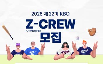 한국야구위원회(KBO)가 11일부터 2026 제 22기 KBO Z-CREW(제트크루)를 모집한다.KBO Z-CREW는 기존 ‘대학생 마케터’에서 명칭을 변경하고, 콘텐츠 제작 중심이 아닌 KBO 리그 전반에 참여하는 활동으로 운영 방향을 확대했다.KBO Z-CREW는 한 시즌 동안 KBO 리그의 미래 성장과 팬 경험 강화를 주제로 한 연간 프로젝트를 진행하며, Z세대 관점에서 KBO 리그의 중·장기적 방향성과 신규 사업 아이디어를 제안하고 기획하는 역할을 수행하게 된다. 참여 대학생들은 팀 단위 프로젝트를 통해 KBO 리그 관련 주제를 분석하고, 정기적인 제언과 토의를 통해 실질적인 결과물을 도출할 예정이다.아울러 KBO 주최 주요 행사 참여를 통해 현장 경험을 쌓고, 프로젝트 결과물과 연계한 콘텐츠 제작 활동도 병행한다. 이를 통해 콘텐츠 제작 중심의 기존 운영 방식에서 나아가, 기획·분석·제언 중심으로 활동 비중을 조정할 예정이다.이외에도, 프로스포츠 산업 전문가 멘토링 및 정기 회의를 통해 프로스포츠 산업에 대한 전반적인 이해를 돕고, KBO 리그의 발전 방향에 대한 토의를 진행하게 된다.KBO Z-CREW는 서류 전형과 면접 전형을 거쳐 총 10명을 선발한다. 선발 대상은 신입생과 휴학생을 포함한 대학생으로 한정하며 군휴학자, 졸업자 및 대학원생은 지원이 불가능하다. KBO 리그에 대한 관심과 이해도가 높고, 콘텐츠 기획 및 제작, 프로젝트 수행 역량이 우수한 대학생을 중심으로 선발할 예정이다.최종 선발된 KBO Z-CREW에게는 KBO 리그 정규시즌 기간 전 구장 출입이 가능한 2026 시즌 AD 카드, KBO 굿즈, 활동비가 지급된다.지원서와 포트폴리오는 11일부터 20일 오후 1시까지 구글폼을 통해 제출해야 하며, 구글폼은 KBO 인스타그램 프로필 링크를 통해 접속할 수 있다. 지원서 양식은 KBO 홈페이지 NOTICE 게시판에서 다운로드 후 작성 가능하다.안희수 기자 2026.02.11 17:13
