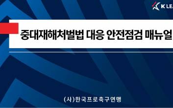 한국프로축구연맹이 K리그 전 구단에 ‘중대재해처벌법 대응 안전점검 매뉴얼’을 배포했다.K리그 경기가 열리는 경기장은 중대재해처벌법상 공중이용시설에 해당한다. 따라서 경기장에서 사고가 발생할 경우, 구단이 책임을 질 수 있기 때문에 연맹은 경기장의 안전성 확보를 통해 사고를 예방하고자 이번 매뉴얼을 제작하게 됐다.안전점검 매뉴얼에는 중대재해처벌법에 따른 일반적인 법령상 의무 사항을 포함해, K리그 구단 및 경기장의 특성을 반영한 구체적이고 실효성 있는 가이드라인을 담았다. 여기에는 안전 인력 확보, 안전 예산 편성, 안전점검 계획수립 및 이행 절차 등을 상세하게 다뤘다.또한, 연맹은 중대재해에 관한 대응뿐 아니라 예방에도 초점을 맞춰 각 구단 스스로가 미리 점검할 수 있도록 경기장 안전점검 체크리스트도 함께 제공했다.한편 연맹은 이번 매뉴얼 배포와 함께 관련 질의응답, 매뉴얼 교육 등을 진행해 구단에서 실질적으로 안전점검을 할 수 있도록 돕고 있으며, 올해 7월부터는 희망 구단에 한해 안전점검 컨설팅 또한 실시할 계획이다.이은경 기자 2025.05.28 16:17
