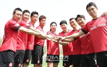 "와아, 이게 도대체 무슨 상황입니까? 이 레전드들을 우리 부대에서 보게 될 줄은 꿈에도 몰랐지 말입니다."한국 축구의 별들이 군부대에 떴다. 면면만 보면 파울루 벤투(포르투갈) 감독이 이끄는 현역 축구대표팀이 와도 밀리지 않을 만큼 화려하다. 이천수(인천 전력강화실장) 최태욱(축구대표팀 코치) 현영민(JTBC 해설위원) 김태영(전 수원 코치) 설기현(성남 전력강화실장) 송종국(전 해설위원) 등 2002 한일월드컵 4강 신화를 일군 멤버를 필두로 조원희(JTBC 해설위원) 김용대(은퇴) 김정우(대건고 감독) 김재성(SPOTV 해설위원) 등 2006·2010년 월드컵 멤버가 발을 맞춘다.여자 20세 이하(U-20) 대표팀 골키퍼 출신 유가은은 홍일점이다. 여기에 조성환(전 제주 감독) 정경호(상주 코치) 박재홍(전 부천 코치) 등도 지원 사격한다. 말 그대로 '축구판 장성급 멤버'가 결성된 셈이다. 팀 이름은 '지구방위대FC' 프로젝트명은 '군대스리가'다. 지구방위대가 결성된 이유는 한국 축구(K리그)의 붐업과 국군 장병의 사기 진작을 위해서다. 세 번째 시즌을 맞은 지구방위대 프로젝트(맘스터치 후원)는 국방부와 협력했다. 계룡대를 시작으로 전국 주요 군부대 10곳을 찾아 해당 부대 선발팀과 승부를 벌이는 방식이다. 공 좀 찬다는 현역 장병 대 40대 전설들의 결전인 셈이다.그냥 공만 차는 게 아니다. 지구방위대는 득점당 50만원, 경기 이후 이어지는 족구 대결에서 승리할 경우 100만원을 '위국헌신 전우사랑' 기금으로 적립한다. 그렇게 모인 적립금은 오는 10월 지상군 페스티벌에서 후원금 형식으로 전달될 예정이다. 지구방위대는 앞선 두 차례 시즌을 통해 이미 5100만원을 기부했다. 군대스리가 프로젝트의 준비 과정과 경기 장면은 해당 소셜네트워크서비스(SNS)에 게재된다.지구방위대 선수 겸 감독을 맡은 설기현은 "요즘 한국 축구와 K리그에 대한 관심이 높아져 기쁘다. 군대스리가 프로젝트를 통해 지금 분위기를 더 끌어올리는 데 도움이 되면 좋겠다. 밤낮 없이 나라를 지키는 군인 여러분과 땀을 흘릴 수 있어서 좋다. 가장 잘하고 좋아하는 축구를 통해 누군가를 도울 수 있어서 뿌듯하다"고 소감을 밝혔다. 이천수는 "군대에서 축구하는 프로젝트기 때문에 남자들 마음은 이미 사로잡은 것 같다. 뜨거운 반응이 예상된다"면서도 "여심 확보를 위해 경기 전과 경기 도중에 쉴 새 없이 터질 깨알 같은 유머와 아재들의 몸 개그가 준비돼 있다"며 반전 재미를 예고했다. 벤투 감독을 보좌하는 최태욱은 "축구대표팀과 K리그의 발전에 도움이 되길 바란다"고 거들었다. 최근 찾은 지구방위대의 첫 훈련 현장은 현역 시절 A매치 분위기를 떠올리게 했다. 팀 버스를 타고 경기장에 나타난 선수들은 일사분란하게 유니폼으로 환복한 뒤 설기현의 구령에 맞춰 러닝과 스트레칭 그리고 패스 순서로 몸을 풀었다. 지난 시즌까지 울산에서 뛰었던 골키퍼 김용대는 "현역 시절 다들 한 가닥 하던 대단한 선수들이었다. 대표팀에 발탁되면 볼 수 있는 얼굴이다. 이렇게 시간이 흘러 다시 모이니 그때 생각도 나서 설렌다. 체력이 전성기 시절 같진 않아서 그때처럼 잘할 수는 없겠지만 최선을 다하겠다"고 각오를 밝혔다. 최태욱은 "다들 실력은 선수 시절 그대로다. 앞으로 흥미진진한 경기들이 예상된다. 달라진 것이 있다면 다들 중후해졌다는 점이다. 예전에 꽃미남으로 통했던 용대 형은 꽃아저씨로 늙었다"고 농담했다. 완벽할 것 같던 지구방위대도 약점은 있었다. 이날 연습 상대였던 대건고와 경기 전반에는 잘 드러나지 않던 체력 문제다. 은퇴 이후 수년이 지난 일부 레전드는 숨이 턱까지 차오르는 모습이었다. 하지만 이 문제는 최근까지 현역으로 뛴 조원희와 현영민이 힘내면서 해결됐다. 작년까지 수원에서 미드필더로 뛴 지구방위대의 막내 조원희는 "왜 나만 시켜"라고 투덜거리면서도 특유의 체력과 활동량으로 중원을 완벽히 장악했다. 현역 시절 수비수였던 현영민은 측면을 누비며 쉴 새 없이 크로스를 시도했다. 송종국도 예외였다. 꾸준한 자기 관리를 이어 온 그는 선수 시절 못지않은 날카로운 움직임을 자랑했다.마무리는 역시 이천수였다. 그는 동료들이 측면과 후방에 찔러 준 패스를 받아 여러 차례 번뜩이는 슛으로 연결했다. 현역 시절 뛰어난 킥 능력과 압도적 드리블 돌파가 주 무기였던 이천수는 녹슬지 않은 슛 감각을 선보이며 해결사 역할을 자처했다. 다만 드리블 상황에선 헐떡이는 장면을 자주 연출해 동료들의 장난 섞인 지적을 받았다. 평소 장난기 많기로 유명한 조원희는 "상무 입대는 형들 통틀어 내가 가장 빠르다. 군번으로 따지면 다들 까마득한 후배들이다. 군대에서 축구하는 건 내게 꼭 맞는 옷을 입고 뛰는 것"이라며 자신감을 보였다. 조원희는 2003년 광주 상무에 입대한 예비역 병장이다. 그는 이어 "천수 형의 배를 보면 마라도나와 비교될 만큼 많이 나왔다"면서 "영민이 형, 태욱이 형은 몸 관리를 잘했다. 그래도 지금 상황을 보면 내가 수비를 열심히 해야 한다"고 한숨을 내쉬었다. 설기현은 "천수가 수비를 안 해서 걱정"이라면서도 "선수 때처럼 쉽게 공을 차면 못 뛰어도 상관없을 것"이라고 했