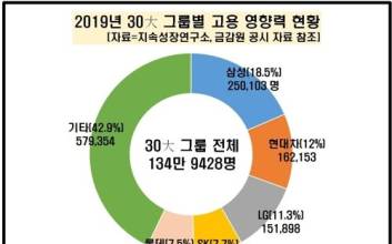 SK 30대 그룹 중 고용 성장률 가장 높아, 비중 1위는 삼성