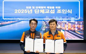 포스코 노사가 올해 임금협상을 마무리했다. 포스코 노사는 17일 서울 포스코센터에서 '2025년 임금·단체협약 조인식'을 열었다. 조인식에는 이희근 포스코 사장과 신경철 경영지원본부장, 김성호 포스코노조 위원장과 조양래 수석부위원장 등이 참석했다.포스코 대표교섭노조인 한국노총 금속노련 포스코노조는 지난 5일 회사 측과 임단협에 잠정 합의했다. 이후 지난 13일 조합원 투표에서 합의안이 가결돼 임단협이 최종 타결됐다. 조합원의 70% 이상이 합의안에 찬성표를 던진 것으로 알려졌다. 합의안에는 기본임금 11만원 인상, 경쟁력 강화 공헌금 250만원, 우리사주 취득 지원금 400만원, 지역사랑 상품권 50만원 지급 등 내용이 담겼다.생산성 인센티브(PI) 제도를 신설하고, 입사 시기에 따라 다르게 운영된 임금체계를 일원화하며 작업장 안전 강화를 위한 작업중지권 사용을 확대하는 내용도 포함됐다.김 위원장은 "교섭을 조기에 마무리한 만큼 현장의 불필요한 잡무를 줄이고 안전한 일터를 만들기 위해 적극적으로 나서겠다"고 말했다.포스코 관계자는 "올해 임단협은 최근 수년간 반복된 교섭결렬 선언, 파업 찬반투표 등 투쟁과 갈등 위주의 패턴을 깨고, 노사가 상생과 신뢰를 통한 철강경쟁력 복원이라는 공동 목표를 위해 한 뜻을 모은 결과"라며 "앞으로도 노사가 힘을 합쳐 현장 안전을 최우선으로 하면서 세계 최고 수준의 품질과 기술력을 확보하기 위해 모든 역량을 집중하겠다"고 밝혔다.김두용 기자 2025.09.17 18:00