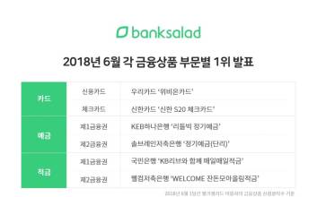 통합 온라인 자산관리 서비스 뱅크샐러드가 6월 1달 간 서비스 이용자들에게 가장 큰 인기를 얻은 카드, 예금, 적금 각 부문별 금융상품 1위를 11일 공개했다. 먼저 신용카드 1위는 우리카드의 ‘위비온카드’로 해외가맹점에서도 3%의 청구할인을 받을 수 있어 해외휴가를 앞둔 여행객 또는 직구족들 사이에 인기를 끈 것으로 보인다. 2위는 수협은행의 ‘Real?Real!카드’, 3위는 삼성카드 ‘taptap O’, 4위는 현대카드 ‘ZERO(할인형)’, 5위는 신한 ‘Hi-point 카드’가 차지했다. 체크카드분야 1위에는 ‘신한 S20 체크카드’가 이름을 올렸다. 이 카드는 서점, 외국어학원, 어학시험 응시료, 대중교통 등 다양한 곳에서 폭 넓은 할인 혜택을 제공해 새내기 대학생들이 입문하기 좋은 카드로 알려져있다. 2위는 ‘신한 S20 Pink 체크카드’, 3위는 ‘카카오페이 신한 체크카드’, 4위는 ‘배달의민족 우리체크 카드’, 5위는 ‘신한카드 S-Line 체크카드’가 차지했다. 이 밖에 선불형 충전카드인 코나카드가 체크카드 1위보다 높은 클릭 수를 기록하며 떠오르는 신흥 카드로 주목받기도 했다. 예금 부문의 경우 제1금융권 1위는 KEB하나은행의 ‘리틀빅 정기예금’이었다. 2위는 전북은행의 ‘스마트정기예금’, 3위는 씨티은행 ‘프리스타일예금’, 4위 전북은행 ‘시장금리부 정기예금’, 5위는 카카오뱅크 정기예금 순으로 나왔다. 제2금융권에서는 솔브레인저축은행의 정기예금(단리)가 1위였다. 이어 유안타저축은행 정기예금(복리), 더블저축은행 정기예금(단리), 유진저축은행 e정기예금(복리), KB저축은행의 정기예금(복리) 순이었다. 적금에서는 제1금융권 1위에 국민은행 ‘KB리브와 함께 매일매일적금’, 2위 IBK기업은행의 ‘IBK평생든든자유적금’, 3위 대구은행 ‘e-U(이유적금)’, 4위 카카오뱅크 자유적금, 5위에 부산은행 장학적금이 올랐다. 제2금융권 적금 1위는 웰컴저축은행 ‘WELCOME 잔돈모아올림적금’, 2위 한국투자저축은행 정기적금, 3위 NH저축은행 정기적금, 4위는 키움저축은행 ‘e-plus 정기적금’, 5위에는 금화저축은행 자유적립예금이 선정됐다. 전반적으로 1,2 금융권을 통틀어 소액을 정기적으로 저금하는 상품들이 상위권을 차지하는 모습을 보였다. 권지예 기자 kwon.jiye@jtbc.co.kr 2018.07.11 10:23