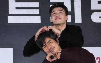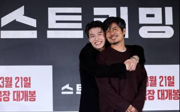 배우 강하늘과 조장호 감독이 26일 오후 서울 광진구 롯데시네마 건대입구점에서 진행된 영화 '스트리밍'(감독 조장호) 제작보고회에 참석해 포토타임동안 포즈를 취하고 있다.