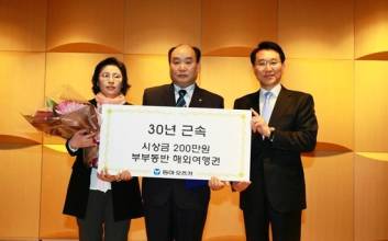 동아오츠카가 창립기념일을 맞아 서울 용두동 본사 신관 7층 강당에서 제34회 창립기념식을 진행했다고 11일 밝혔다. 장기 근속자에 대한 포상 행사도 함께 마련됐다. 이날 행사에는 이원희 사장을 비롯해 임직원 120여 명이 참석했다. 이 사장은 창립기념사를 통해 “비전 2017의 첫걸음을 딛는 원년으로 만들어 혁신을 통해 성장하고 발전하는 동아오츠카가 될 수 있도록 임직원 모두 온 힘을 다하자”고 격려했다. 장기근속 및 포상에는 30년 근속상-서울영업부 최재석 과장, 20년 근속상-마케팅본부 이진숙 이사 외 16명, 10년 근속상-특수영업부 이영복 대리 외 32명이 수상의 영예를 안았다. 장기근속자에게는 상금과 여행상품권이 부상으로 전달됐으며, 정근상과 노조추천 공로상에 대한 시상도 이어져 임직원 총 58명에 대한 포상이 진행됐다.이소은 기자 luckysso@joongang.co.kr 2013.03.11 13:35