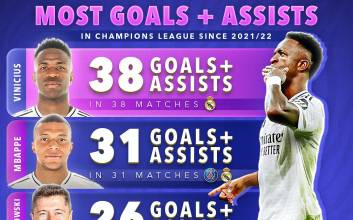‘음바페·레반도프스키·홀란 다 나와’ 비니시우스, UCL 4시즌 공격 포인트 단독 1위