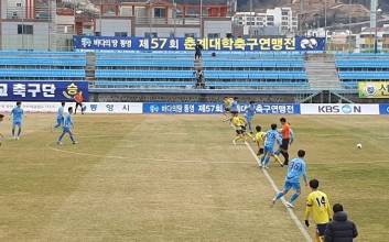 광주대가 정상에 올랐다. 광주대는 6일 경남 통영의 통영공설운동장에서 펼쳐진 '제57회 춘계대학축구연맹전' 한산대첩기 결승 제주국제대와 경기에서 5-1 완승을 거뒀다. 이번 승리로 광주대는 우승을 차지했고, 2013년 이후 8년 만에 정상을 탈환했다. 광주대는 전반 1분 만에 선제골을 넣으며 기선을 제압했다. 제주국제대의 수비 실책을 놓치지않았다. 설현진이 골키퍼와 단독 찬스를 맞이했고, 침착하게 오른발로 마무리 지었다. 전반 중반 제주국제대가 반격을 시도했지만 골을 성공시키지 못했다. 오히려 광주대가 추가골을 넣으며 흐름을 가져왔다. 이번에도 수비 실책을 득점으로 연결시켰다. 전반 30분 아크 오른쪽에서 김명순이 크로스를 올렸고, 제주국제대 수비수가 제대로 처리하지 못하자 박규민이 달려들어 오른발 논스톱 슈팅으로 골망을 흔들었다. 제주국제대는 전반 33분 장재웅의 오른발 중거리 슈팅이 크로스바를 때려 땅을 쳐야 했다. 후반 1분 제주국제대는 송찬규의 날카로운 슈팅으로 다시 한 번 반격에 나섰다. 하지만 광주대가 세 번째 골을 넣으며 사실상 승부에 마침표를 찍었다. 후반 4분 설현진이 골키퍼와 일대일 찬스를 맞이했고, 골키퍼를 속인 뒤 왼발 슈팅으로 골을 성공시켰다. 후반 20분, 광주대는 우승을 자축하는 네 번째 골을 터뜨렸다. 문전에서 김명순이 오른발 슈팅으로 골네트를 갈랐다. 후반 30분 제주국제대는 1골을 만회했다. 프리킥에 이은 이재석의 헤딩 슈팅이 골문 안으로 빨려 들어갔다. 하지만 첫 골이 너무 늦었다.그리고 광주대도 가만히 보고 있지 않았다. 광주대는 후반 35분 다섯 번째 골을 터뜨리며 제주국제대의 추격의지를 완전히 꺾었다. 안재선이 환상적인 오른발 슈팅을 때렸고, 공은 골대 오른쪽 구석을 갈랐다. 이후 제주국제대는 마지막까지 골을 노렸으나 더 이상 성공시키지 못했다. 결국 광주대의 승리로 경기는 마무리 됐다. 통영=최용재 기자 choi.yongjae@joongang.co.kr