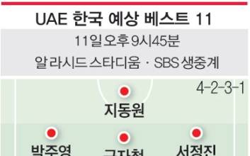 12일 밤(한국시간) 두바이 국제공항에서 만난 조광래 한국축구대표팀의 표정은 밝았다. 하루 전 치른 아랍에미리트(UAE)와의 맞대결(2-0승)에서 고전했지만, 중동원정에서 승점3점을 따낸 것에 만족하는 모습이었다. 조 감독은 "UAE전은 불가피하게 주축 선수들이 여럿 빠지거나, 월드컵 최종예선에서 강팀과 만났을 때를 대비한 테스트 성격이 강했다"면서 "홍정호를 수비형미드필더로 세우는 실험은 성공적이었다고 본다. 15일 치르는 레바논과의 경기에서는 우리 대표팀의 약점인 왼쪽 수비 지역을 점검할 것"이라 말했다. 이와 관련해 "중앙미드필더 이용래를 왼쪽으로 돌리는 방안을 고심 중이다. 이는 공격축구의 완성도를 높이기 위한 옵션"이라는 부연설명을 곁들였다. 경고누적으로 레바논전에 나서지 못하는 박주영(26·아스널)의 대안으로는 UAE전 선제 결승골의 주인공 이근호(26·감바 오사카)를 꼽았다. -UAE전에서 후반42분까지 골이 들어가지 않았는데."전반전은 수비 형태가 흐트러지지 않도록 유지하는 것에 역점을 뒀다. 후반 시작과 함께 손흥민을 투입하며 변화를 줬다. 상대의 압박이 심해 수비 뒷공간 침투를 주문했다. 그것이 먹혀들면서 경기 흐름이 바뀌었다."-'홍정호 시프트'에 대한 평가는."경기 후에 차범근 전 수원 감독을 잠깐 만났는데, 홍정호의 플레이를 긍정적으로 평가하더라. 1선에서 공격수를 미리 차단하니까 수비진의 안정감이 높아진 것 같다. 허리에서 뛴 경험이 부족해 미숙한 부분도 있지만, 홍정호는 영리한 선수라 빨리 적응할 것으로 본다. 레바논전에도 홍정호는 미드필더로 활용할 계획이다." -기성용이 있었어도 UAE전에 홍정호를 미드필더로 기용했겠나."물론이다. 부상 등으로 인해 미드필드진의 주축 멤버가 빠지거나 월드컵 최종예선에서 좀 더 강한 팀들과 맞붙었을 때를 대비해 꾸준히 구상한 카드였다. 홍정호를 수비형 미드필더로 쓸 땐 기성용에게 보다 공격적인 역할을 주문할 수 있다. 이번에 중원에서 홍정호-기성용 조합을 체크하고 싶었는데, (기)성용이가 아파 시도하지 못했다."-후반 들어 홍철 대신 수비형 미드필더 이용래를 왼쪽 측면수비수로 활용했는데."공격을 강화하기 위해서였다. 이용래와 함께 경남에 있을 때 여러 차례 활용해 본 방법이다. 중앙은 수비력을 유지해야하는 지역이니 측면에서 풀어나가는 것이 맞겠다는 생각을 했다. 이용래는 많이 뛰고 드리블이 좋은 선수다. 흐름을 읽을 줄도 안다."-레바논전에서는 어떤 선수가 왼쪽 수비수로 나서나."아직 고민 중이다. 홍철은 기술이 있고 빠른 공격수를 만나면 고전하는 경향이 있다. 어려서 그런지 대범하지 못한 것 같다. 경험이 좀 더 쌓여야 한다. 당초 이용래를 후반 전술 변화용 카드로 생각했는데, 지금은 선발로 기용하는 방안도 진지하게 고려하고 있다. 물론 김영권 카드도 염두에 두고 있다." -이근호가 모처럼만에 골을 넣었다."최근에 몸이 올라왔다. 경기 전에 '무조건 투입시킬테니 철저히 준비하라'고 지시했다. 지동원이 부진한 데다 다음 경기에는 박주영도 뛰지 못하기 때문에 공격라인에 변화를 줄 수 밖에 없는 상황이다. 이근호의 역할이 중요하다."-박주영이 경고누적으로 레바논전에 뛰지 못한다. 대안은 있나."양쪽 측면에 빠른 공격수를 배치하는 방안과 중앙에서 활발히 2선 침투하는 방안을 모두 고민 중이다. 이승기 등 젊은 선수들에게 기회를 주는 방법도 생각하고 있다. 일단 최전방에는 이근호를 배치할 생각이다."베이루트(레바논)=송지훈 기자 milkyman@joongang.co.kr