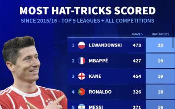 해트트릭은 한 선수가 한 경기에서 3골 이상 넣는 것을 의미한다. 대개 보통의 축구선수라면 선수 생활에서 한 번이라도 해트트릭을 작성하는 것은 쉬운 일이 아니다.레반도프스키는 10년간 473경기에 나서 23번이나 해트트릭을 기록했다. 유럽 빅리그에서 유일하게 20회를 넘었다. 그가 10년 새 뛰었던 분데스리가, 라리가 등 리그로 범위를 좁혀도 325경기에서 16번이나 해트트릭을 작성했다.그만큼 꾸준히 골망을 갈랐고, 몰아치기에 능했다는 것을 알 수 있는 기록이다.