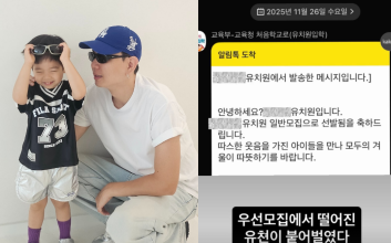 코미디언 홍현희의 남편인 디자이너 제이쓴이 ‘대반전’ 합격 소식에 감격했다.26일 제이쓴은 자신의 SNS에 “우선모집에서 떨어진 유치원이 붙어버렸다”라는 글과 함께 메시지 캡처 사진을 공개했다.사진 속에는 “○○유치원 일반모집 선발됨을 축하드립니다”라는 문구와 함께 아들이 유치원 일반모집에 합격했음을 알리는 메시지가 도착했다.앞서 제이쓴은 지난 10일 해당 유치원의 우선모집 탈락 결과를 받고 “환장”이라는 짧은 메시지와 함께 캡처 화면을 공개해 학부형 누리꾼들의 공감을 받았다. 그후로부터 보름 만에 일반모집에서 합격하자 제이쓴은 ‘입틀막’ 이모티콘을 덧붙여 감격을 드러냈다.한편 제이쓴은 지난 2018년 홍현희와 결혼해 4년 만에 아들 준범 군을 품에 안았다.이주인 기자 juin27@edaily.co.kr