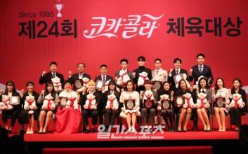 2019년 제24회 코카콜라 체육대상 시상식이 25일 서울시 중구 소공로 웨스틴조선호텔 그랜드볼룸에서 열렸다. 최우수선수상을 수상한 수영 김서영 등 수상자들이 포즈를 취하고 있다.양광삼 기자yang.gwangsam@jtbc.co.kr/2019.02.25/ 2019.02.25 13:09