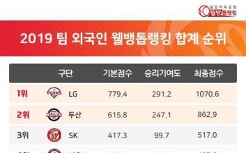 [웰컴저축은행 웰뱅톱랭킹] 톱랭킹으로 살펴본 외국인 성적, LG-두산이 웃었다