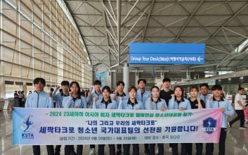 한국 세팍타크로 청소년 대표팀이 중국 칭다오에서 열리는 2024 U-23 아시아 비치 세팍타크로챔피언십 출전을 위해 18일 출국했다고 대한세팍타크로협회가 밝혔다. 이번 대회는 오는 20일부터 24일까지 열린다.이 대회는 2019년부터 시작됐으나, 코로나19로 한동안 개최되지 못했다. 그러다 올해 중국 칭다오에서 제2회 대회가 개최돼 명맥을 이어가게 됐다.대표팀은 지난 5월 태국에서 전지훈련을 실시하고, 혼다 유니온 컵에 참가한 바 있다. 중국 칭다오 대회는 올해 마지막 국제 청소년 세팍타크로 대회다. 협회는 “이번 대회는 향후 대한민국 세팍타크로의 미래를 책임질 우수선수 발굴의 장으로, 청소년 국가대표팀 선수들이 성장할 좋은 기회다”며 “약 17개국이 참여하는 이번 대회에서 좋은 성과를 거두기 위해 선수단은 현지 도착 후 적응훈련을 통해 컨디션을 끌어올릴 예정”이라고 설명했다.오주영 대한세팍타크로협회 회장은 “우리 청소년 국가대표팀 선수들이 이번 기회를 통해 국제대회 경기 경험을 쌓고, 대한민국을 대표하는 선수로서 자긍심을 품을 수 있는 경험을 통해 큰 동기부여를 얻고 향후 국가를 대표하는 선수로 성장하여 대한민국 세팍타크로의 세계적 경쟁력을 유지할 수 있기를 바란다”라고 응원했다. 오 회장은 오는 21일 직접 중국을 방문해 선수들을 격려할 예정이다. 김우중 기자