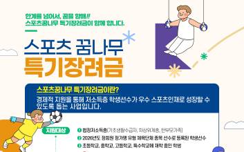 '매월 40만원' 체육공단, 2026년 스포츠 꿈나무 특기 장려금 지원