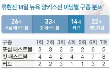 류현진(34·토론토)이 커터를 앞세워 뉴욕 양키스 타선을 무너뜨렸다. '악의 제국' 천적으로 거듭났다. 류현진은 14일(한국시간) 미국 플로리다주 더니든 TD볼파크에서 열린 2021 메이저리그(MLB) 뉴욕 양키스와의 홈 경기에 선발 등판, 6⅔이닝 4피안타 1볼넷 7탈삼진 1실점(비자책)을 기록했다. 시즌 평균자책점은 종전 2.92에서 1.89로 낮췄다. 토론토가 7-3으로 이겨 류현진은 시즌 세 번째 등판 만에 첫 승을 거뒀다. 박찬호(은퇴)에 이어 한국인 빅리거로는 2번째로 MLB 통산 60승 고지를 밟았다. 양키스 킬러로 변신한 점도 의미가 크다. 류현진은 지난해까지 네 차례 양키스에서 1승2패 평균자책점 6.04로 부진했다. 그러나 지난해 9월 25일 등판에서 7이닝을 무실점으로 막았고, 2021시즌 개막전이었던 2일에도 5⅓이닝 2실점으로 호투했다. 그리고 14일에는 양키스 강타선을 완벽하게 농락하며 판세를 뒤집었다. 이날 류현진의 최고 무기는 커터(컷 패스트볼)였다. 홈 플레이트 부근까지 포심 패스트볼처럼 날아가다가 타자 앞에서 우측(우타자 기준 몸쪽)으로 살짝 떨어지는 공이다. 류현진은 1회 초 선두 타자 D.J 르메이휴에게 내야 안타를 허용했다. 그러나 후속 지안카를로 스탠튼에게 병살타를 유도했다. 시속 139㎞ 커터를 몸쪽(우타자 기준)에 구사해 타자의 시선을 흔든 뒤, 바깥쪽 체인지업을 던져 타이밍을 빼앗았다. 2017시즌 홈런왕(59개) 스탠튼이 배트에 공을 맞히는 데 급급했다. 결과는 2루 땅볼. 강타자 애런 저지도 커터로 루킹 삼진을 잡아냈다. 허를 찔렀다. 류현진은 볼카운트 1볼-2스트라이크에서 주로 우타자 몸쪽으로 구사하던 커터를 바깥쪽 낮은 코스에 던졌다. 스트라이크존 밖에서 안으로 휘어 들어가는 백도어 커터였다. 2017시즌 아메리칸리그 신인 한 시즌 최다 홈런 신기록(52개)을 경신한 저지는 배트도 내지 못했다. 류현진은 2회 초 아웃카운트 3개를 모두 삼진으로 잡아내며 순항을 이어갔다. 1사 주자 없는 상황에서 상대한 애런 힉스에게는 커터-체인지업 조합으로 헛스윙을 유도했다. 앞선 1회 스탠튼에게 병살타를 유도한 볼 배합. 2사 뒤 상대한 루그네드 오도어는 2스트라이크에서 바깥쪽(좌타자 기준) 커터를 구사해 헛스윙 삼진을 잡아냈다. 양키스 타자들의 스윙은 타이밍이 맞지 않았고, 공과 차이도 컸다. 류현진은 3회 초 제이 브루스를 상대할 때 바깥쪽(좌타자 기준) 낮은 코스 커터를 보여준 뒤 커브로 타이밍을 빼앗았다. 4회 초 선두 타자 르메이휴에게는 몸쪽(우타자 기준) 커터를 보여준 뒤 낮은 코스 포심을 던져 루킹 삼진을 잡아냈다. 4회 초 스탠튼과의 재대결에서는 시속 135~138㎞로 형성됐던 커터의 구속이 143㎞까지 찍혔다. 양키스 타자들은 포심 패스트볼만큼 빠르고 예리한 커터에 속수무책으로 당했다. 위기에서도 커터가 빛났다. 류현진은 5회 초 1사 주자 없는 상황에서 힉스에게 좌전 안타를 맞았다. 12타자 연속 범타 행진이 끝났다. 그러나 후속 오도어에게 바깥쪽 커터를 구사해 2루 땅볼을 유도했다. 토론토 내야진이 병살타로 만들었다. 6회 초에도 2사 뒤 2루타와 볼넷을 허용하며 처음으로 실점 위기에 놓였지만, 스탠튼에게 커터를 던져 투수 앞 땅볼로 잡아냈다. 류현진은 2015년 5월, 왼 어깨 수술을 받은 뒤 긴 재활 치료 기간을 보냈다. 재기가 불투명했다. 그러나 2017시즌 장착한 커터를 무기로 MLB 정상급 투수로 올라섰다. 7이닝 2실점을 기록하며 호투한 8일 텍사스전에서도 결정구로 12번이나 구사했다. 탈삼진 7개 중 4개를 커터로 솎아냈다. 양키스 타선은 지난 2년(2019~20시즌) 동안 MLB 30개 구단 중 가장 많은 홈런(400개)을 기록했다. 류현진의 커터 앞에 침묵했다. MLB 공식 홈페이지 MLB.com은 "류현진이 양키스를 장악했다"며 호평했다. 류현진은 경기 뒤 "제구가 괜찮았던 것 같다. 구속도 잘 나왔다. 그동안 커터 각도 변화를 줄이고, 구속을 더 내기 위해 노력했다. 앞으로도 그런 공을 더 많이 던져야 한다"며 투구 내용을 총평했다. 양키스를 상대로 연속 호투한 점에 대해서는 "올 시즌은 준비를 잘했다. 개막전부터 (양키스 상대로) 자신이 있었다"고 전했다. 안희수 기자 2021.04.15 06:01
