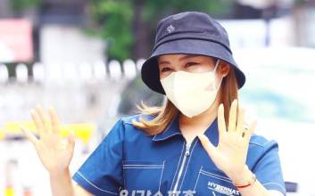 가수 송가인이 16일 오전 KBS에서 열리는 '트롯매직유랑단'' 녹화에 참석하며 포즈를 취하고 있다.박찬우 기자 park.chanwoo@jtbc.co.kr2021.06.16 2021.06.16 11:38