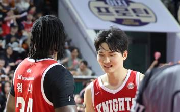 안영준(30·1m96㎝)과 김선형(36·1m87㎝)이 서울 SK의 정규리그 우승 매직 넘버를 2로 줄였다.SK는 9일 서울 잠실학체육관에서 열린 2024~25 KCC 프로농구 정규리그 5라운드 홈경기에서 대구 한국가스공사를 89-69로 이겼다. 이날 승리로 SK는 최근 6연승을 질주했다. 정규리그 36승 8패(승률 0.818)를 기록한 SK는 앞으로 2승을 더하면 자력으로 우승을 확정한다. 2연승을 더하면 프로농구 정규리그 최단경기 우승 기록(2011~12시즌 원주 동부 47경기)도 1경기 줄인다.정규리그 우승을 예약했고, 긴 연승을 달려도 전희철 감독은 방심하지 않았다. 앞서 SK는 하위권인 서울 삼성(10위) 고양 소노(9위) 상대로 15점 차를 뒤집고 이겼다. 전 감독은 이를 두고 "선수들이 '우리가 뒤집는 힘이 있다'고 착각할 수 있다"며 "한국가스공사는 (하위권인) 삼성, 소노와 다르다. 경기 초반 점수 차가 벌어지면 따라잡기 힘들다"고 경계했다. 전희철 감독의 경고가 통했다. SK는 1쿼터부터 한국가스공사를 몰아치며 승기를 잡았다. 김선형이 1쿼터 중반 코너 3점슛을 넣었고, 팀 속공도 레이업으로 마무리했다. 특유의 광속 드리블로 한국가스공사 수비진을 가볍게 제쳤다. 김선형은 1쿼터가 끝나기 전 다시 코너와 정면에서 3점슛을 추가해 한국가스공사를 압도했다.1쿼터를 30-23으로 마친 SK는 2쿼터 기세를 이어갔다. 자밀 워니 대신 투입된 아이재아 힉스가 블록 2개와 8득점으로 리드를 벌렸다. SK는 전반 1분 54초 전 김태훈의 3점슛으로 50득점 고지를 점령했고 전반을 더블 스코어에 가까운 60-32로 마무리했다. 후반에도 흐름을 지켜간 SK는 3쿼터 막판 김선형의 레이업, 워니의 유로스텝 득점을 꽂았다. 이어 안영준과 김선형이 속공을 합작해 SK는 3쿼터를 78-50으로 마쳤다. 승기를 굳힌 SK는 4쿼터 주전 선수들의 시간을 조절하며 5연승째를 거뒀다. SK는 김선형이 3점슛 3개를 포함해 22점 2어시스트 1스틸 맹활약했고, 안영준은 11점 10리바운드 10어시스트 1스틸로 트리플 더블을 달성했다. 이날 SK는 속공으로 16득점을 기록하는 등 특유의 빠른 농구를 마음껏 펼쳤다. 올 시즌 고민거리였던 3점슛도 10개(성공률 40%)를 꽂았다.한국가스공사는 슛 감각이 흔들렸다. 한국가스공사는 이날 경기 전까지 경기당 평균 10.1개 3점슛(1위)을 넣었고 성공률 33%를 기록했다. 이날도 포워드 신주영이 3점 3개를 포함해 11점 깜짝 활약했지만, 팀 3점 성공률은 26%로 좋지 못했다. 앤드류 니콜슨이 17점으로 분전했지만, 김낙현(10점 야투 성공률 25%) 샘조세프 벨란겔(4점 야투 성공률 25%) 등의 슛 감각이 무뎠다.잠실=차승윤 기자 chasy99@edaily.co.kr 2025.03.09 15:42