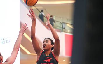 청주 KB가 2024 우리은행 우리WON 3x3 트리플잼(이하 2024 트리플잼) 조별예선에서 2패를 기록하며 토너먼트 진출에 실패했다. ‘디펜딩 챔피언’ 도요타 안텔롭스(일본)는 조 1위로 8강에 진출했다.KB는 29일 스타필드 고양 1층 센트럴 아트리움에서 열린 2024 트리플잼 조별예선 B조 최종전에서 도요타 안텔롭스(일본)에 7-21로 졌다. KB는 조별예선 2패째를 기록하며 아쉽게 짐을 싸게 됐다. KB는 도요타 안텔롭스와 만나 초반 접전을 벌였다. 성수연이 2점슛을 꽂으며 분위기를 이어갔고, 이혜주가 돌격대장을 맡았다.하지만 이혜주가 발목 통증을 호소하며 잠시 자리를 비우면서, 격차가 벌어지기 시작했다. 도요타는 타나카 우훠마가 높이를 이용한 공격을 연속해 성공하며 달아나기 시작했다. 교체 인원에 여유가 없어진 KB는 조금씩 체력에서 밀리기 시작했다. 도요타는 경기 종료 2분 15초를 남겨두고 타나카가 골밑 득점을 올리며 경기의 마침표를 찍었다. ‘디펜딩 챔피언’ 도요타 안텔롭스는 2년 연속 우승 도전 기회를 이어갈 수 있게 됐다. B조 1위(2승)에 오른 도요타는 2위(1승 1패) 아라고스 뱃츠(스페인)와 함께 8강 토너먼트로 향한다. 2024 트리플잼 8강전은 오는 30일 같은 장소에서 열린다.