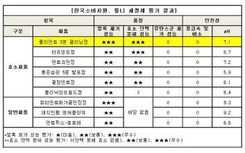 틀니의 위생 관리를 위한 틀니 세정제에 알레르기 유발 가능성이 있는 성분이 함유된 것으로 드러났다. 한국소비자원은 7일 소비자 선호도가 높은 틀니세정제 9개 제품을 대상으로 음식 얼룩 제거·단백질 분해·뮤탄스균 제거 등 주요 성능과 중금속 및 비소 함량·pH 등 안전성 검사를 진행한 결과를 발표했다.그 결과 중금속이나 pH 이상은 없었으나 제품에 따라 음식 얼굴 제거나 단백질 분해 성능 등에서 차이가 있는 것으로 나타났다. 또 전 제품에서 소비자의 체질에 따라 알레르기를 유발할 수 있는 과황산화합물이 발견됐다.단백질 분해 성분이 있다고 표기된 6개 제품 모두 성능에서 차이를 보였다. 특히 JW중외신약에서 판매하는 클리닉덴트골드정은 아예 효소가 없는 것으로 나타났다. 한국소비자원은 JW중외신약에 해당 제품에 대한 교환과 환불 등 시정조치를 권고했다.성능이 가장 우수한 제품은 폴리덴트 5분 클리닝 정이었지만 가격은 1정당 204원으로 높은 수준이었다. 터프덴트정·좋은습관 5분 발포정·쿨링덴트정은 음식 얼룩 제거 성능과 단백질 분해 성능이 모두 보통 수준이었다.조사된 전 제품에서 소비자에 따라 알레르기를 유발할 수 있는 과황산화합물이 함유돼 있었다. 미국식품의약국(FDA)에서는 지난 2008년 과황산화합물이 들어있는 틀니 세정제의 사용과 관련된 부작용을 발표하기도 했다.향후 식품의약품안전처(이하 식약처)에서는 과황산화합물에 대한 소비자 주의 정보를 제공하기 위해 틀니 세정제의 알레르기 관련 표시 정보를 강화할 예정이다.이번 조사 제품들은 충치를 일으키는 뮤탄스균을 99.9% 이상 감소시키는 제거 성능이 있는 것으로 나타났다. 다만 업체마다 제각각의 기준으로 살균력을 홍보하고 있어 식약처는 조만간 '틀니 세정제 살균력 시험법 가이드라인'을 내고 표시정보를 강화할 방침이다.조은애 기자 cho.eunae@joins.com 2016.08.07 13:13