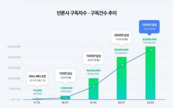국내 최대 포털 네이버에서 언론사를 직접 구독하는 이용자가 70%를 훌쩍 뛰어넘은 것으로 나타났다. 정치 편향성 논란을 야기한 인공지능(AI) 배열에서 기사와 언론사를 선택하는 구독 생태계 전환이 가속하고 있다. 네이버는 '언론사 편집' 서비스를 시작한 지 약 4년 6개월 만에 네이버뉴스 구독 서비스 이용자가 2500만명을 넘어섰다고 29일 밝혔다. 월간 활성 이용자(MAU) 중 76%가 구독을 기반으로 네이버뉴스를 만나고 있다. 네이버는 구독이 네이버뉴스의 핵심 사용 패턴이 된 배경으로 지난해 신설한 '심층기획' 코너와 PC버전으로까지 확대된 언론사 편집 기능을 꼽았다. 현재 79곳이 네이버뉴스 언론사 편집 서비스를 제공하고 있다. 이 중 67%인 53개 언론사가 100만 이상의 구독자를 확보했다. 5개 언론사는 500만명 이상의 구독자를 보유 중이다. 또 68개 언론사가 심층기획 코너를 운영 중이다. 월평균 9000여 주제의 기사들이 이 코너에서 소개되고 있다. 심층기획 코너 개설 후 언론사 편집판 기사 클릭 수는 약 30% 이상 증가했다. 네이버뉴스 이용자 1인당 평균 7개의 언론사를 구독 중이며, 언론사 편집판에서 하루 평균 7.5개의 기사를 클릭하고 있다. 기자와 이용자들이 소통하는 공간인 '기자 홈'을 찾는 발길도 끊이지 않는다. 기자 홈 누적 구독 수는 1년 사이 75% 증가해 744만건을 돌파했다. 이용자 1인당 1일 1회 가능한 '응원' 건수도 누적 1200만건으로 1년 전과 비교해 3배 이상 많아졌다. 네이버 관계자는 "기사들이 더욱 돋보일 수 있도록 큐레이션하는 편집 기능을 선보일 예정"이라며 "네이버뉴스 내 '기자 구독', '연재 구독' 코너에서도 작성자의 편집 가치가 보다 잘 전달될 수 있도록 개선을 준비 중이다"고 말했다. 정길준 기자 jeong.kiljhun@joongang.co.kr 2022.03.29 17:11