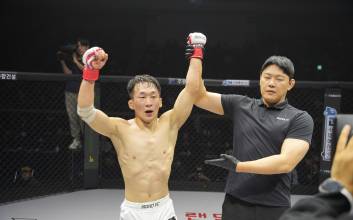 ▲-63kg 밴텀급 양지용(제주 팀더킹) VS 다카하시 겐토(BRAVE GYM)한국과 일본을 대표하는 MMA 경량급 기대주 간 대결이다. 둘은 케이지 중앙에서 경쾌한 스텝을 밟았다. 양지용이 먼저 카프킥으로 기선을 제압했다. 겐토의 재빠른 원투는 양지용의 안면에 닿지 않았다. 탐색전이 길어지자, 심판은 경기를 멈추고 주의를 줬다. 양지용은 몇 차례 주먹을 뻗으며 침묵을 깼다. 그러나 겐토는 케이지를 계속 돌면서 ‘한 방’을 노렸다. 겐토는 양지용에게 하이킥을 허용한 후 테이크다운을 시도했지만, 넘어뜨리지 못했다. 이어진 테이크다운 시도에도 오히려 양지용이 톱 포지션을 점유한 채 첫 라운드를 마쳤다.2라운드에도 비슷한 형세로 흘러갔다. 겐토가 순간적으로 테이크다운에 실패하고 바닥에 넘어졌는데, 이때 양지용이 그라운드 싸움에 들어갔다. 겐토는 양지용의 다리를 잡고 끈질기게 서브미션을 노렸다. 그러나 그라운드 상황이 길어지자, 심판이 스탠딩을 외쳤다. 양지용은 그라운드 싸움을 건 겐토를 상대로 포지션 우위를 점하고 파운딩을 치며 2라운드를 끝냈다.마지막 라운드에도 겐토의 테이크다운 시도가 막혔다. 도리어 양지용이 백포지션을 점유하고 그라운드 싸움을 끌어갔다. 둘은 경기가 끝날 때까지 이 자세를 유지했다. 심판 전원일치 판정승을 거둔 양지용은 MMA 전적 9승 1패를 쌓았다.