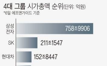 삼성그룹 주의 시가 총액이 5개월 만에 88조원이나 증발했다.                 6일 한국거래소 등에 따르면 지난 3일 기준 유가증권시장과 코스닥시장에 상장된 삼성그룹 23개 종목의 시총은 641조9575억원으로 집계됐다. 지난해 12월 30일 기준 시총이 729조8448억원이었던 것과 비교하면 상반기가 지나기도 전에 87조8873억원이 감소했다.             역대 최대였던 지난해 1월 11일(825조7700억원)과 비교하면 무려 203조5593억원이 사라졌다. 이에 따라 유가증권시장 전체 시총에서 삼성그룹이 차지하는 비중도 지난해 말 33.1%에서 꾸준히 줄면서 지난 3일 30.7%를 기록해 2.4%나 감소했다.           그룹 시총이 줄어든 것은 삼성전자 주가가 부진한 영향이 크다. 지난해 12월 7만8300원이었던 삼성전자 주가는 지난 3일 6만6800원으로 14.7% 하락했다. 이 기간 삼성전자의 시총은 68조6525억원 줄었다.           삼성그룹 계열사 중 올해 주가의 하락폭이 가장 컸던 건 삼성전기로 -24.3%를 기록했다. 시총규모는 3조5853억원이 빠졌다.             LG그룹이 시총 2위다. 지난 3일 기준으로 211조7423억원을 기록하고 있다. LG그룹 중 가장 하락폭이 컸던 계열사는 중국 직격탄을 맞은 LG생활건강이다. LG생활건강은 올해 109만7000원에서 출발해 73만4000원까지 추락하며 33% 이상 떨어졌다.             시총 3위인 SK그룹의 25개 종목 시총은 175조4456억원으로 지난해 말(212조1615억원)보다 36조7159억원 줄었다. 가장 파이가 큰 SK하이닉스가 18.3%나 떨어지며 17조4721억원이나 규모가 줄었다.             하락폭이 가장 컸던 계열사는 지난해 상장된 SK스퀘어다. 올해 6만6400원에서 출발해 지난 3일 기준으로 4만6950원까지 하락했다. 29% 이상 추락하며 2조원 넘게 규모가 줄어들었다.             같은 기간 카카오 그룹도 109조1323억원에서 75조3977억원으로 33조7346억원 줄었다.           대표 종목인 카카오(-23.8%·12조924억원)와 카카오뱅크(-30.3%·8조4364억원) 등의 낙폭이 컸다. 그중 카카오페이가 -38.4%이나 추락하며 가장 하락폭이 컸다.           인플레이션(물가 상승)과 중앙은행의 공격적 긴축 우려, 우크라이나 사태가 촉발한 글로벌 공급망 차질, 중국의 코로나19 봉쇄 등 악재가 뒤얽히며 국내 증시는 움츠러들었다.           김병연 NH투자증권 연구원은 "과거 주식시장은 고점 대비 20% 하락한 이후 60일 이내에 하락 폭의 40∼50%를 되돌리는 것이 일반적"이라고 말했다.                 김두용 기자 kim.duyong@joongang.co.kr