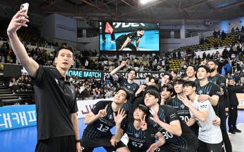 V리그 최고의 별들이 춘천을 배구 열기로 물들였다. 진에어 2025~26 V리그 올스타전이 25일 강원도 춘천 호반체육관에서 개최됐다. 팬·선수단·미디어 투표를 통해 선정된 대표 올스타 38명은 재기 넘치는 퍼포먼스를 보여주며 만원 관중(2871명)에 화답했다. 시작부터 화려했다. 팀 K-STAR, V-STAR 포지션별 올스타가 호명되면 갈라진 대형 스크린 사이에서 선수들이 등장했다. 이들은 선글라스나 머리띠 등 각자 개성을 드러내는 소품을 착용하고, 흥겨운 음악에 맞춰 율동을 선보였다. 남자부 베테랑 신영석(한국전력)과 최민호(현대캐피탈)은 글로벌 신드롬을 일으킨 케이팝 데몬 헌터스(KPop Demon Hunters) 캐릭터 사자 보이즈를 연상케 하는 의상(검은 도포·갓)을 준비해 함성을 끌어냈다.