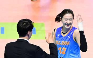 1·2세트 사이 열린 이벤트 경기도 흥미를 자아냈다. 스파이크 서브킹 콘테스트에서는 쉐론 베논 에반스(한국전력)이 역대 이 이벤트 타이기록(123㎞/h)으로 우승했다. 서브퀸은 93㎞/h를 찍은 지젤 실바(GS칼텍스)가 올랐다. 리시브한 공을 바구니에 가장 많이 넣는 룰로 진행된 베스트 리베로 콘테스트에서는 임명옥(한국도로공사)이 30개를 해내며 우승을 차지했다. '배구 여제' 김연경도 축제를 빛냈다. 지난 시즌을 끝으로 은퇴한 그는 예능 프로그램 '신인 감독 김연경' 출연을 통해 V리그 흥행 지원군 역할을 해냈고, 권락희 PD와 함께 이날 KOVO가 수여한 감사패를 받았다. 김연경이 등장하는 순간 장내 팬들은 큰 함성으로 그를 맞이했다. '영플레이어상 후보' 최서현, 이우진(삼성화재)부터 남녀부 '최다 올스타 선정' 신영석, 양효진까지 V리그를 이끌고 있는 스타들이 총출동한 이날 올스타전. 배구팬은 행복했다. 춘천=안희수 기자 anheesoo@edaily.co.kr