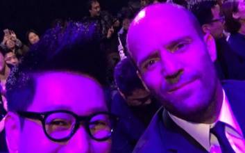 지석진, 액션배우 제이슨 스타뎀과 깜짝만남