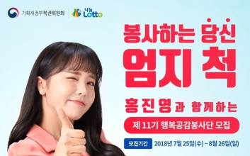 가수 홍진영이 복권홍보대사 및 행복공감봉사단 11기 단장으로 임명됐다. 복권홍보대사 및 행복공감봉사단으로 임명된 홍진영은 봉사단원들과 함께 봉사활동에 참석해 저소득, 소외 이웃에게 희망을 전할 계획이다. 행복공감봉사단은 기획재정부 복권위원회와 (주)나눔로또, 일반 시민들이 함께하는 자원봉사단으로, 2008년부터 '행운의 복권, 공공의 감동'을 모토로 매년 어려운 이웃들에게 웃음과 희망을 전달하고 있다. 소외 이웃에 참된 봉사의 기쁨을 함께하고 싶은 만 19세 이상의 성인남녀라면 누구나 신청 가능하며, 나눔로또 홈페이지(www.nlotto.co.kr)에서 모집 공고를 확인할 수 있다. 제 11기 행복공감봉사단은 9월 중 발대식과 함께 1차 봉사활동을 시작하여 총 3회에 걸쳐 진행된다. 봉사단 최종 선발단원 명단은 8월 28일 개별 문자(SMS) 및 행복공감봉사단 공식 커뮤니티(cafe.naver.com/bong4happy)를 통해 발표할 예정이다. 나눔로또 공익마케팅팀 김정은 팀장은 "올해로 11회째를 맞는 행복공감봉사단은 복권기금 나눔의 의미를 지속적으로 알리기 위해 따뜻한 도움의 손길을 전하며 다양한 봉사활동을 전개하고 있다"며 "올해도 참된 봉사의 기쁨을 함께하고 싶은 많은 이들의 더 큰 관심과 참여를 기다린다"고 말했다. 김연지 기자